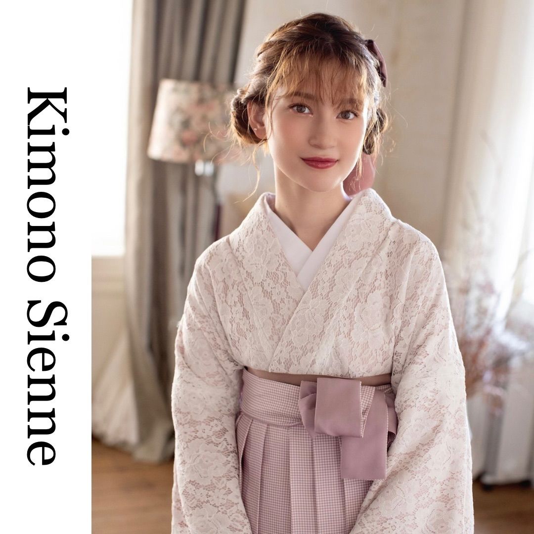 着物ジェンヌ 卒業式 袴3点セット レース二尺袖 白×くすみピンク チェック柄袴