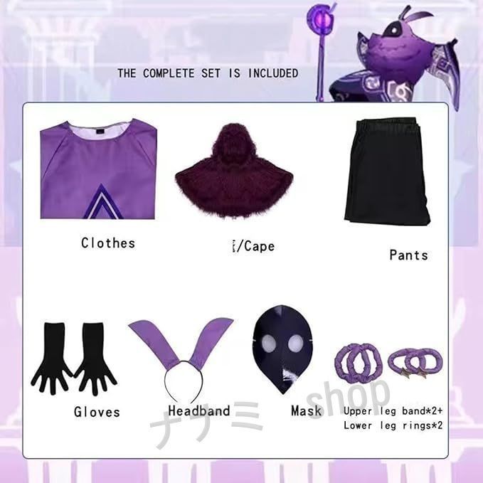 セット内容:衣装だけでなく、アクセサリーや小物も含まれており、キャラクターの個性をより一層引き立てます。