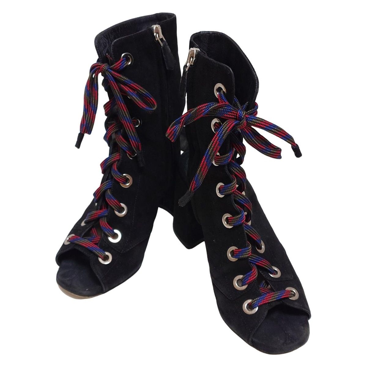 PRADA プラダ ショートブーツ 35 1 2 レディース - 黒×マルチ オープントゥ