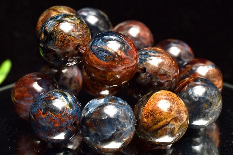 一般的にはタイガーアイ系の茶褐色が多いですが、ブルータイガーの青系もあり、茶と青の混じったものもあります。