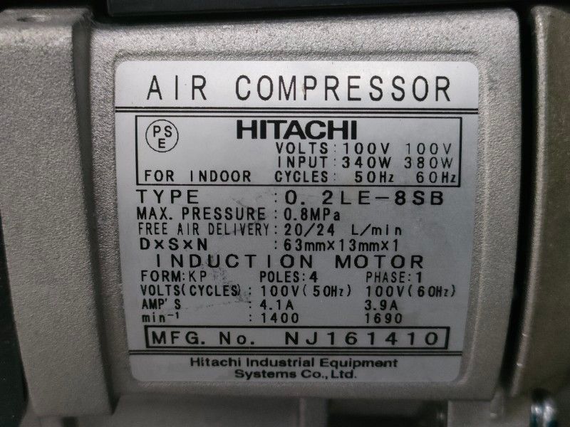 日立 ベビコン 0 2 LE 8 SB スーパーオイルフリーエアコンプレッサー エア漏れなし