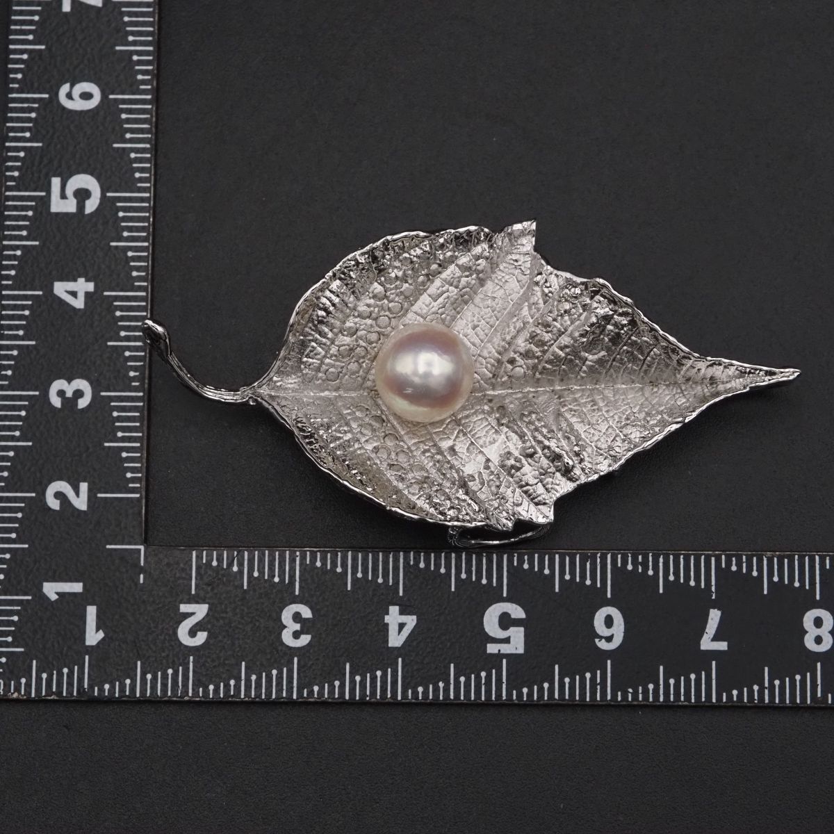 F 786 本真珠 9.5 mm珠 パール SILVER刻印 ブローチ リーフ デザイン シルバー コサージュ 誕生石