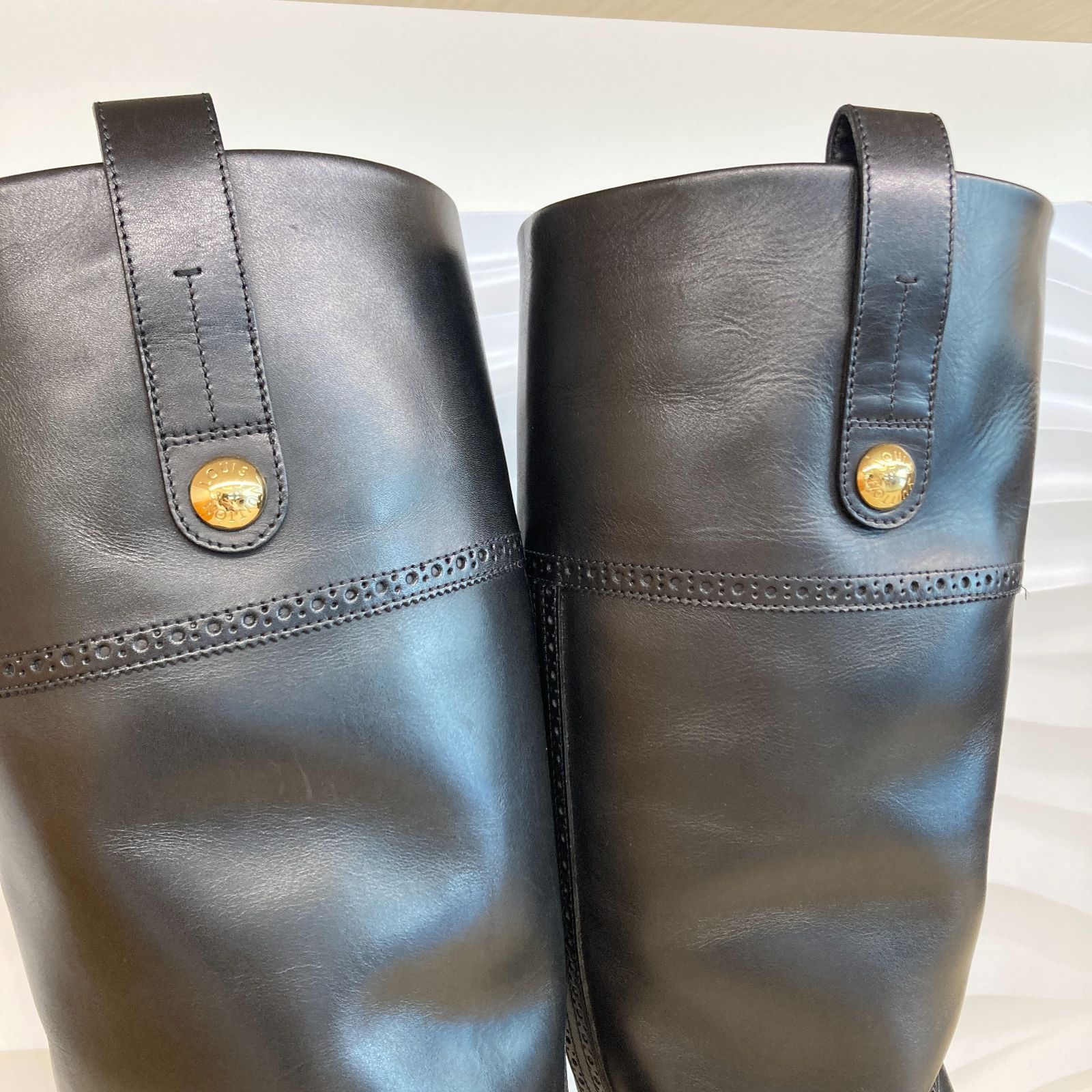 LOUIS VUITTON ルイヴィトン ロングブーツ ブラック 38 1 2 24.5㎝ 25㎝ ゴールド金具 LV ロゴ フラワー ウエスタン 靴 レディース PAWNSHOPRiZ パウンショップリズ