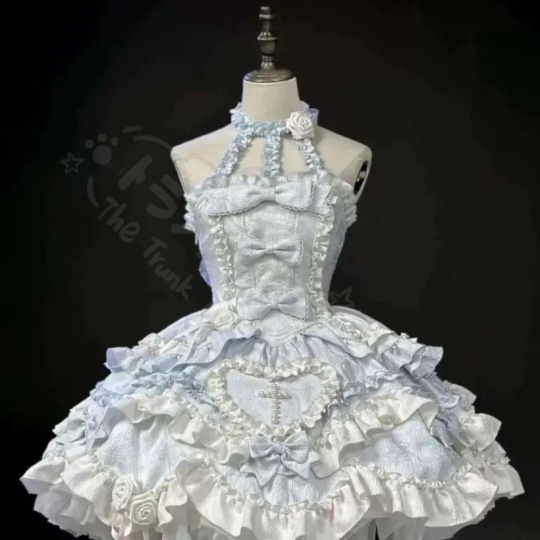 商品詳細:フリルとリボンが特徴の水色ロリータドレス。