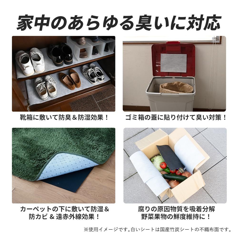 こうひん DIYやリフォームに『調湿・抗菌防臭 竹炭シート BLACK 8帖用』畳の下や押入れ・靴箱など湿気が気になる場所に 中国産竹炭触媒使用 (約100cm × 380cm × 4枚入り)
