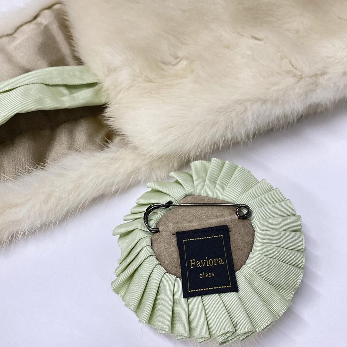 Faviora ファビオラ マフラー - アイボリー×ライトブラウン×ライトグリーン シルク ミンク