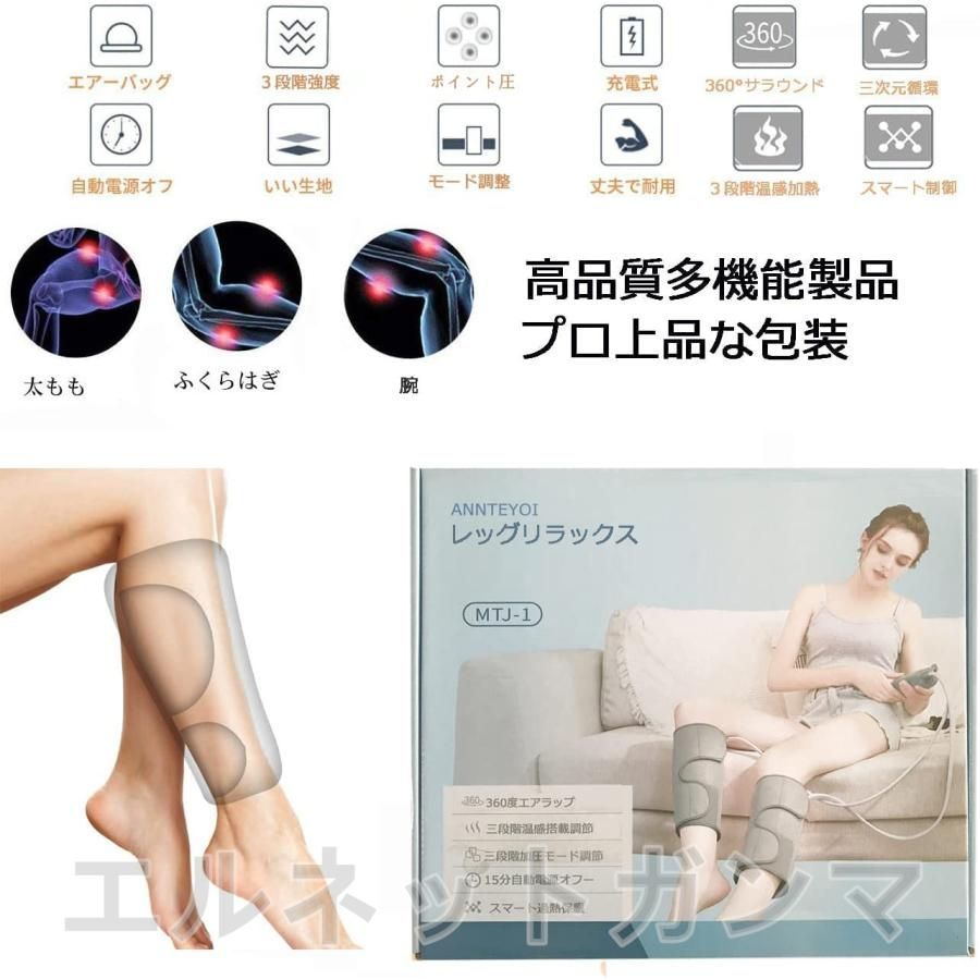 フットマッサージャー 太もも 二の腕 足 ふくらはぎ マッサージ器 マッサージ機 気圧 温熱機能搭載 タイマー機能 強さ調整 プレゼント