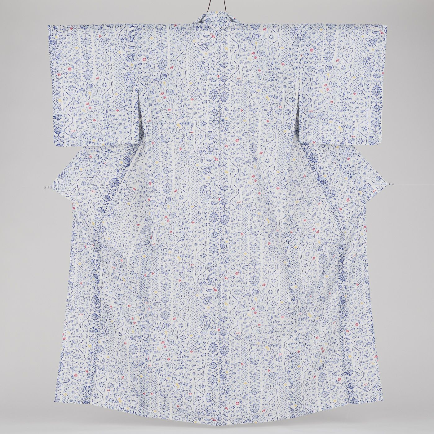 青を基調とした花更紗の縞模様が繊細で美しいですね。