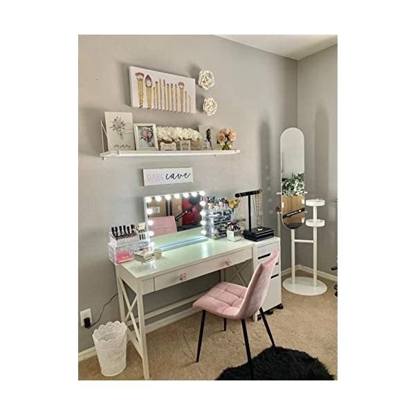 (商品名:FENCHILIN 化粧鏡 女優ミラー ハリウッドミラー 壁掛け/卓上両用 USBポート付き 三色照明モード 無段階調光 15個LED電球付き 10倍拡大鏡付き 58x46cm)