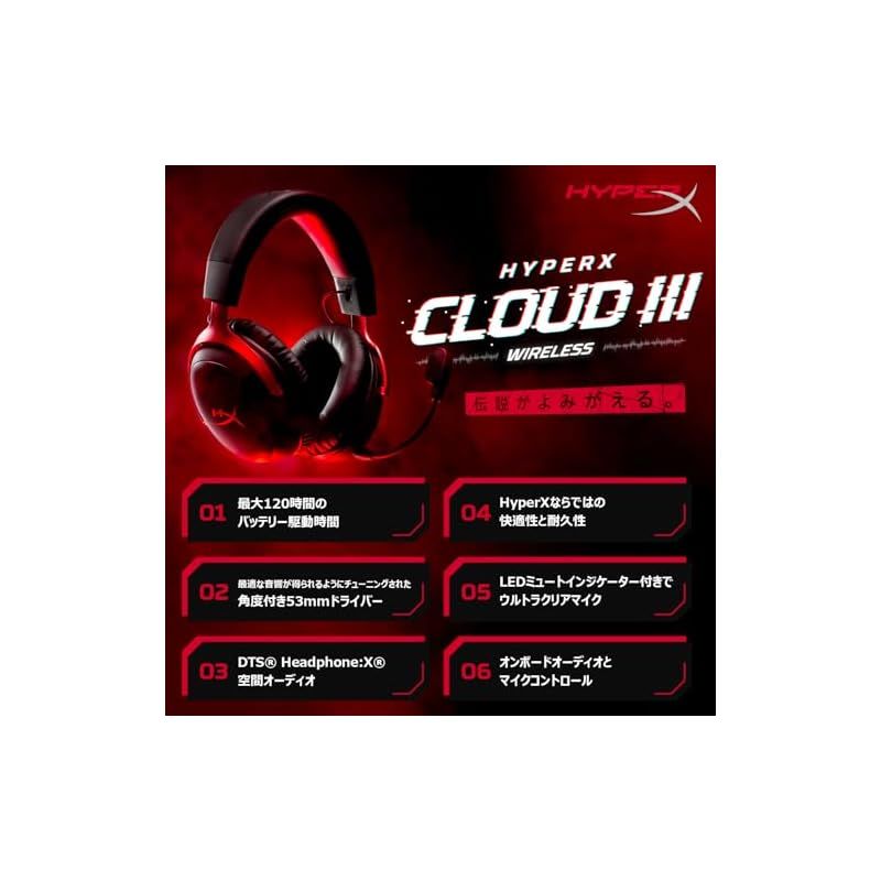 ハイパーエックス HyperX Cloud IIIワイヤレスゲーミングヘッドセット DTS Headphone X空間オーディオ 53 mmドライバー搭載 IIの 快適性 ブラック‐レッド PC PS 5 4 Xboxシリーズ Ni