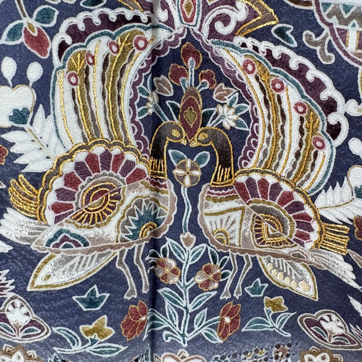 訪問着 身丈171 cm 裄丈64 M 袷 向かい鳥 草花 金糸 刺繍 紺色 正絹