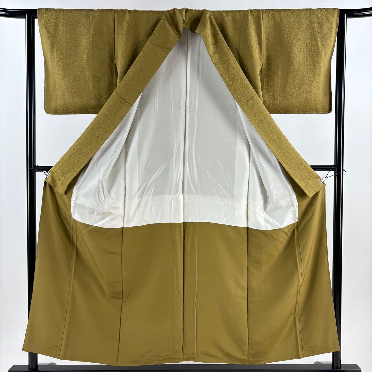 色無地 身丈154 cm 裄丈62.5 S 袷 地紋 茶緑色 正絹 秀品
