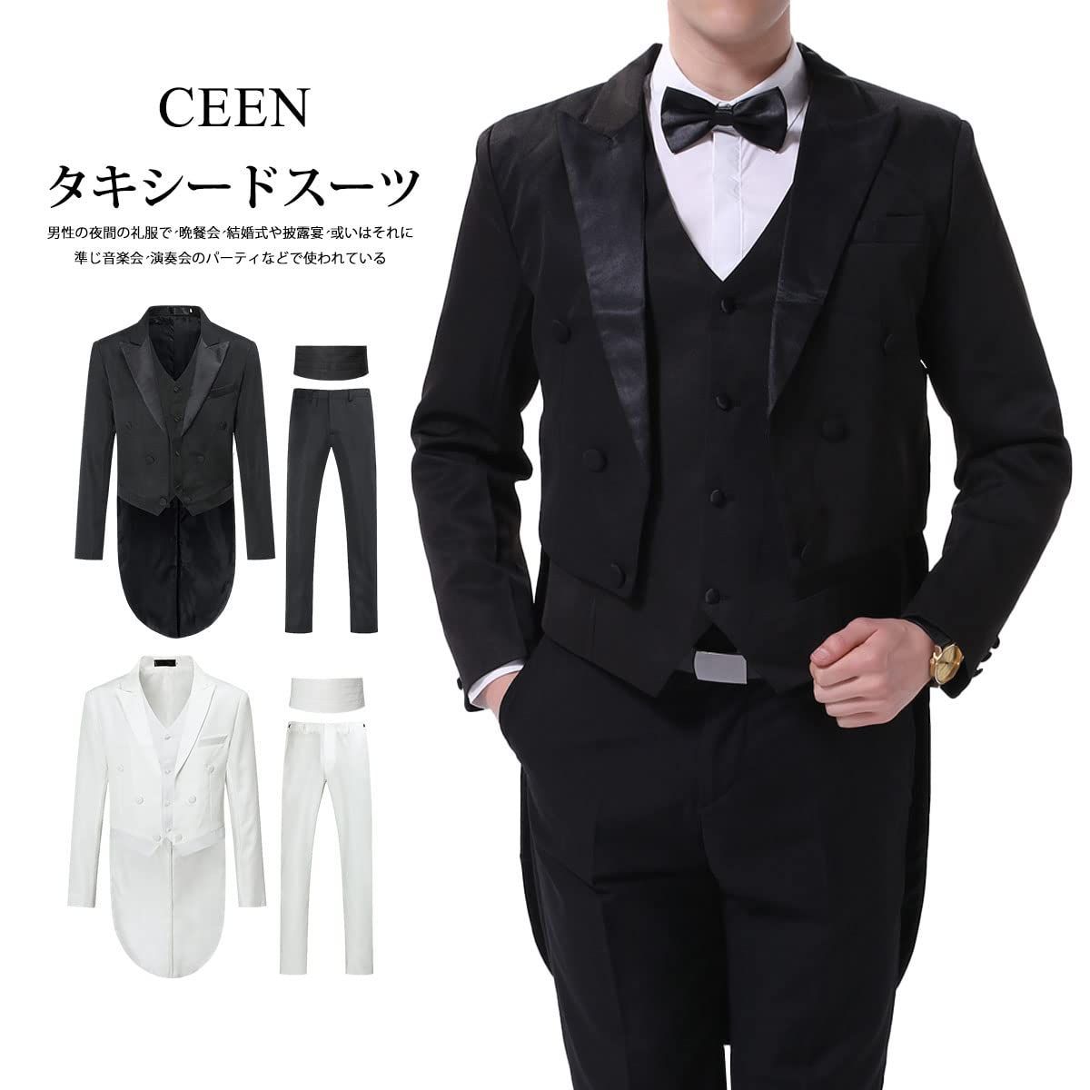 CEEN メンズ タキシードスーツ スタイル 演奏会 音楽会 燕尾服上下セット コゥロード 蝶ネクタイ付け