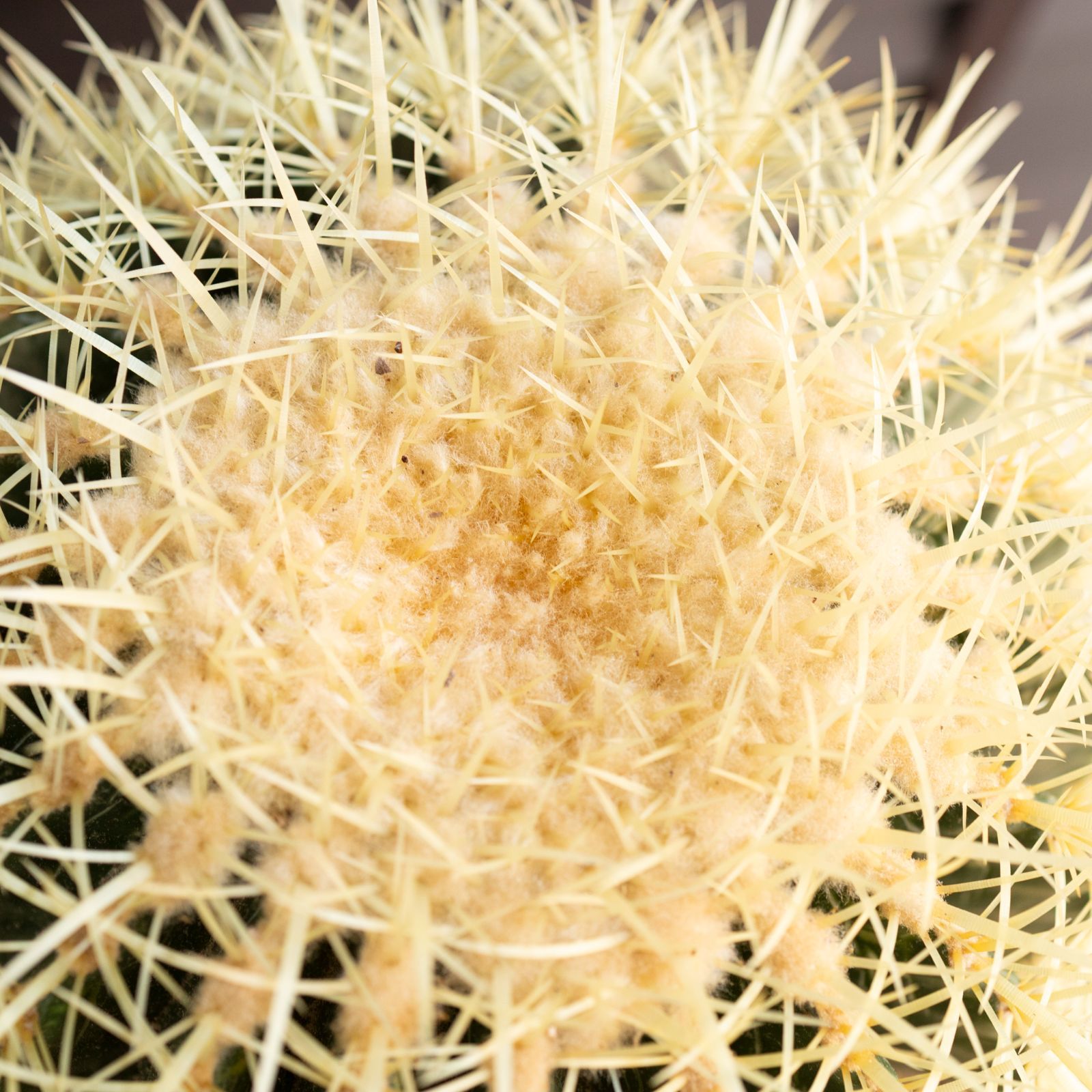 Echinocactus grusoniiという名の品種で黄金色の鋭いトゲで覆われているのが特徴的。