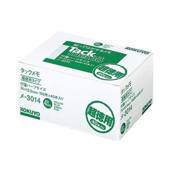 まとめ コクヨ タックメモ 超徳用 付箋タイプ ハーフサイズ 74 12 5 mm ミックス メ 3014 40冊