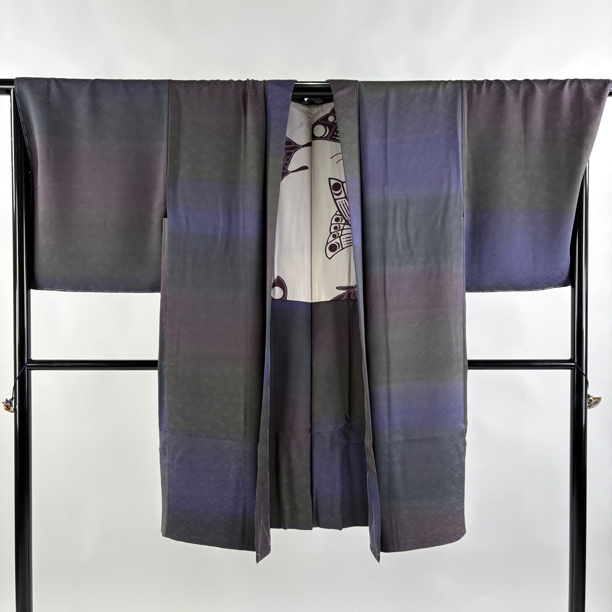 羽織 身丈107 cm 裄丈68 L 落款 地紋 段ぼかし 灰紫 正絹 秀品