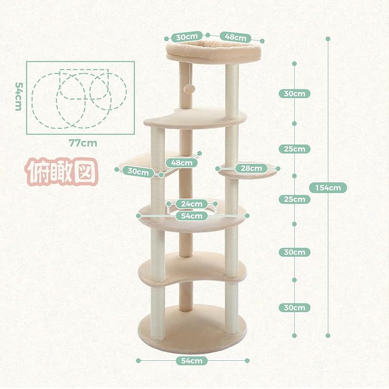 【多頭飼い】サイズ:54×54×154cm、休憩できる場所はたくさんあるので、多頭飼いの場合でもご使用できます!可愛い猫ちゃんたちがここで遊んだり、寝たりして、見るだけでも楽しいo(^o^)o