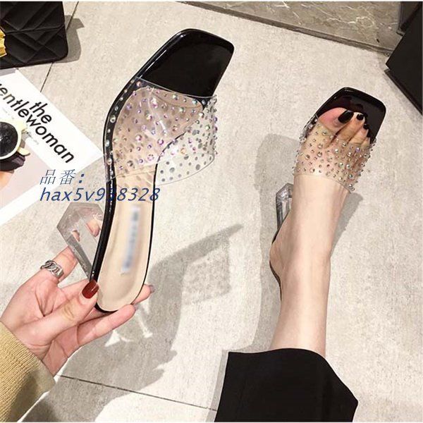 サンダル 透明 クリアサンダル レディース チャンキーヒール ヒール6.5 CM 靴 美脚 おしゃれ 夏 シャンパン カジュアル さんだる 女性 大人 hax 5 v 938328