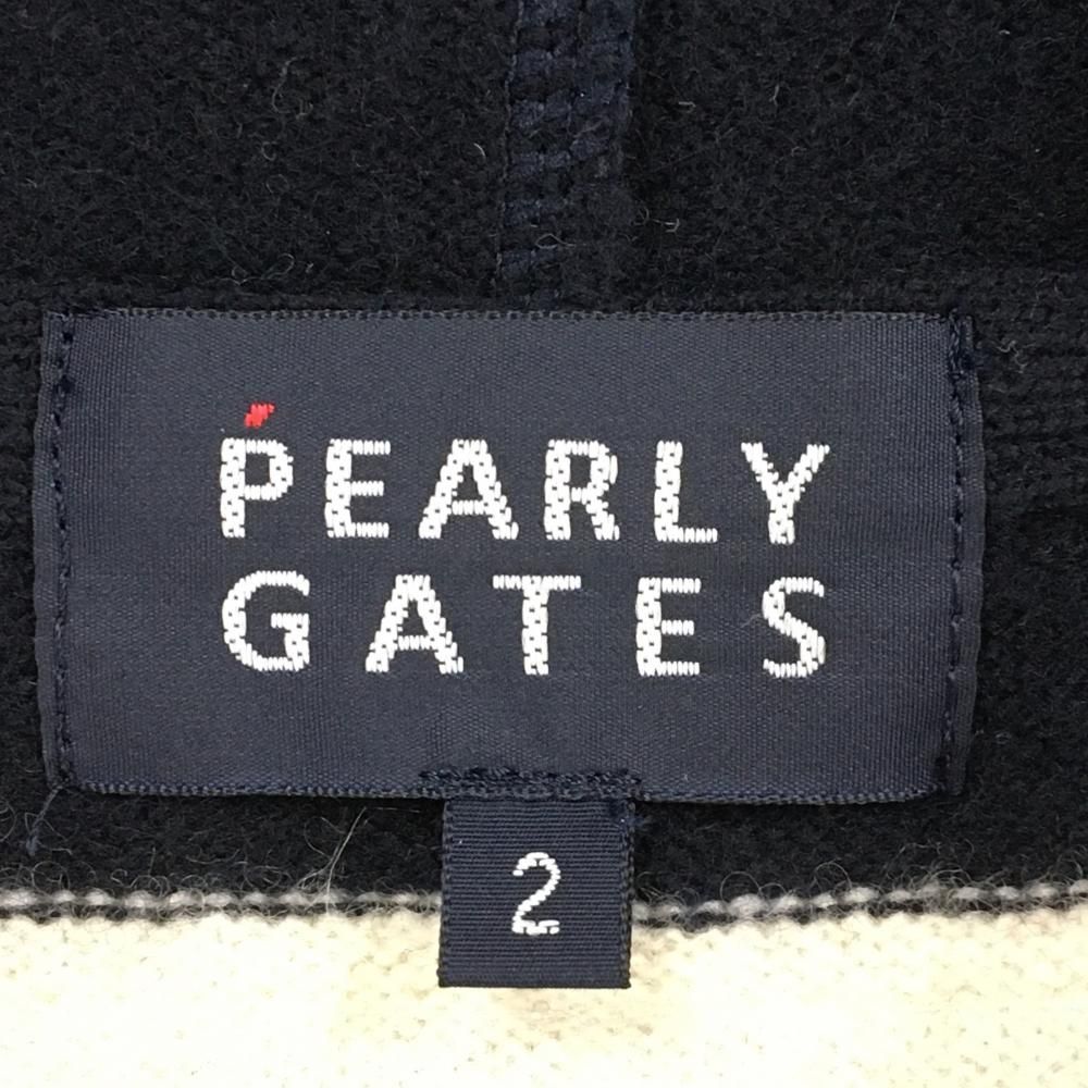 パーリーゲイツ ニットジップパーカー ネイビー×白 後ろボーダー カシミア 羊毛混 レディース 2 L ゴルフウェア PEARLY GATES