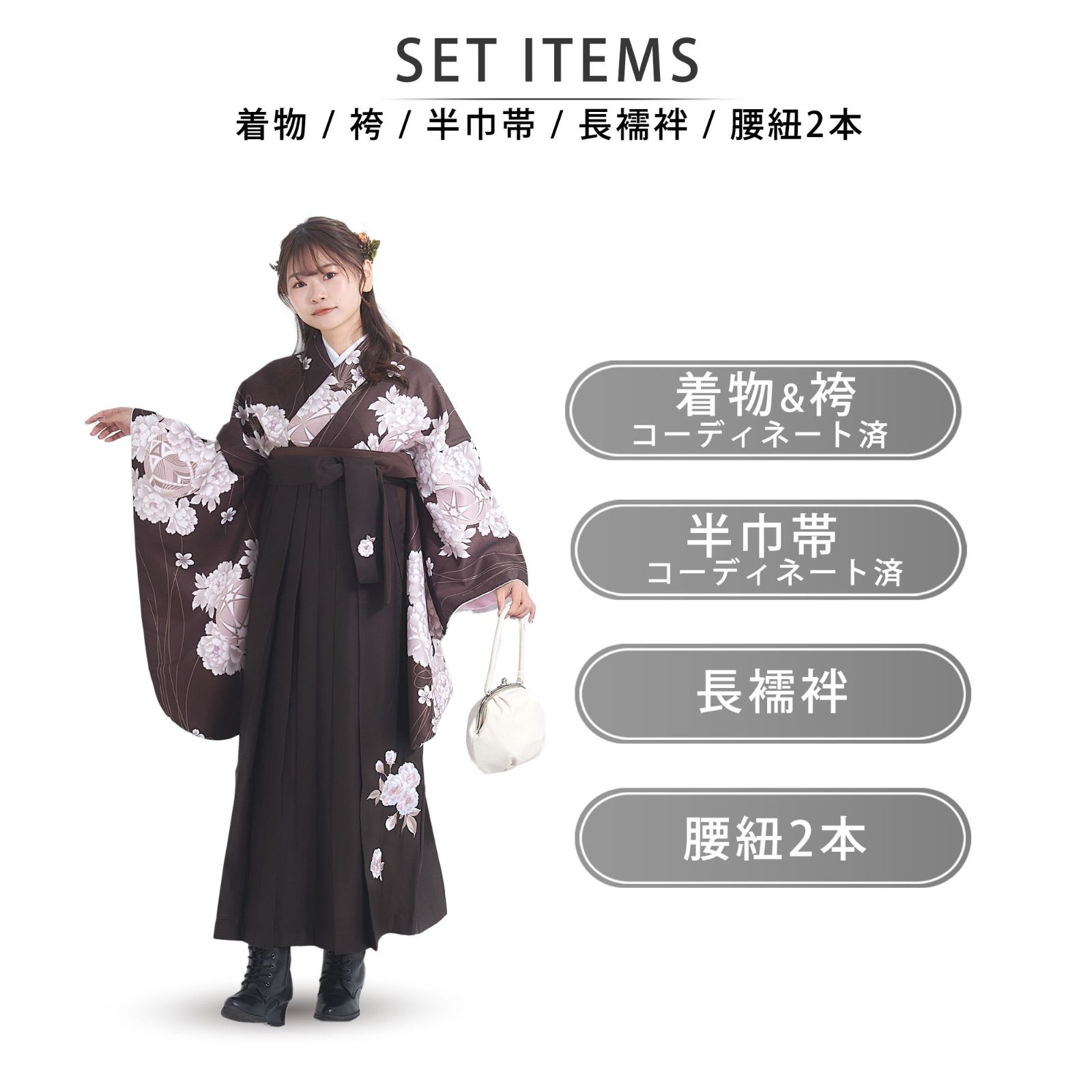 袴 6点セット 卒業式 はかま レディース モダン ブラウン 黒 刺繍 女性 大学生 ジュニア 小学生 女の子 セット着物セット 成人式 謝恩会 販売