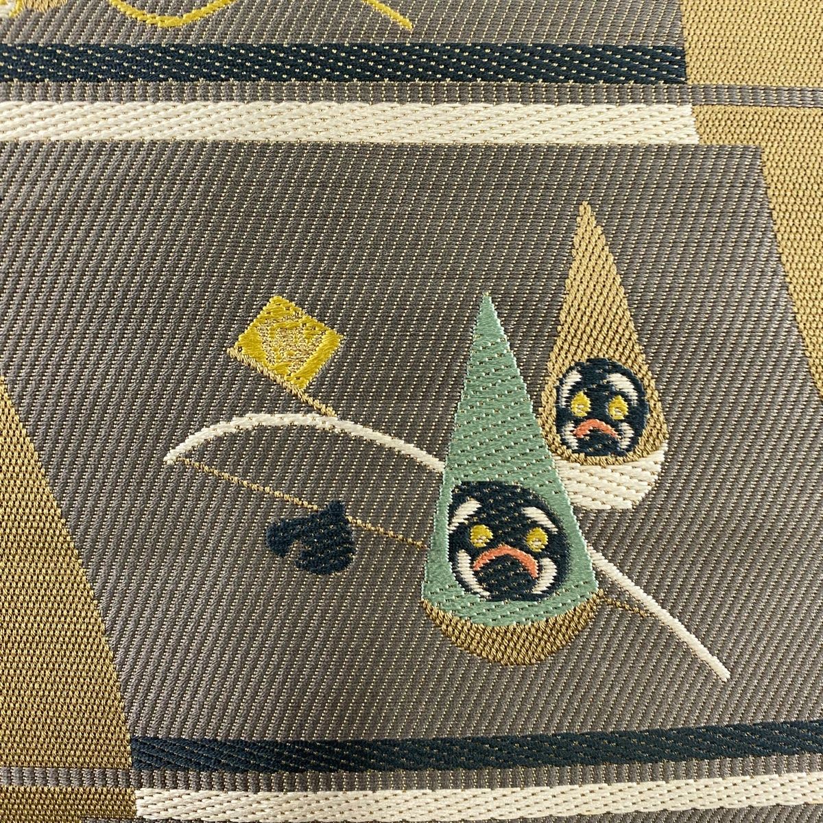 名古屋帯 秀品 松葉仕立て 八寸名古屋帯 玩具 金糸 茶緑色 正絹