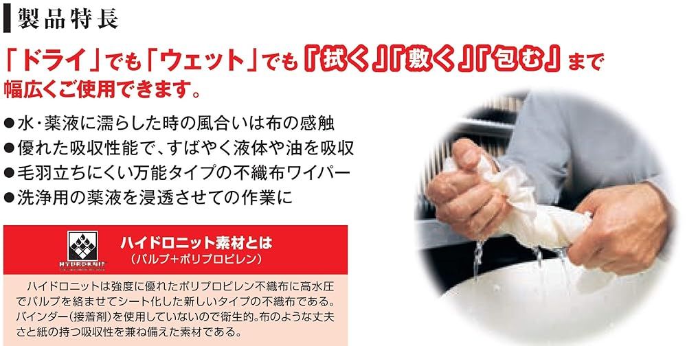 ◆優れた吸収性能で、液体や油をすばやく拭取れる