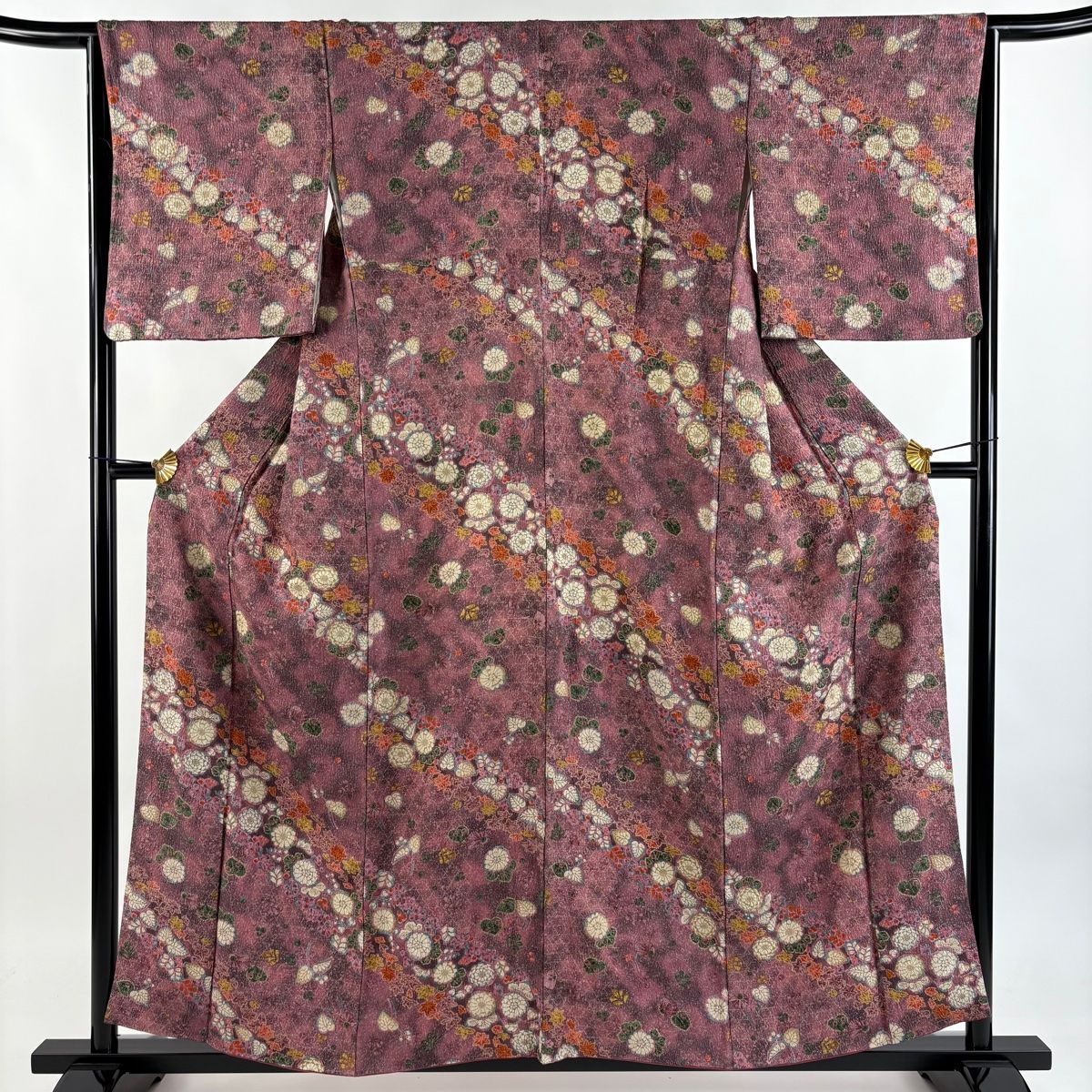 小紋 身丈157 cm 裄丈65 M 袷 草花 籠目 ぼかし 赤紫 正絹 秀品