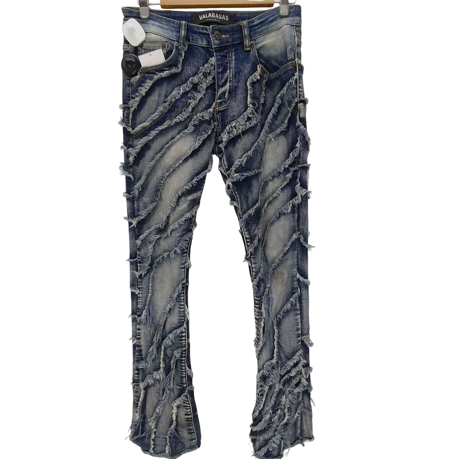 【アイテム】{{VALABASAS}} GRIT STACKED FLARE JEANS フリンジ フレア クラッシュ スキニー デニム パンツ