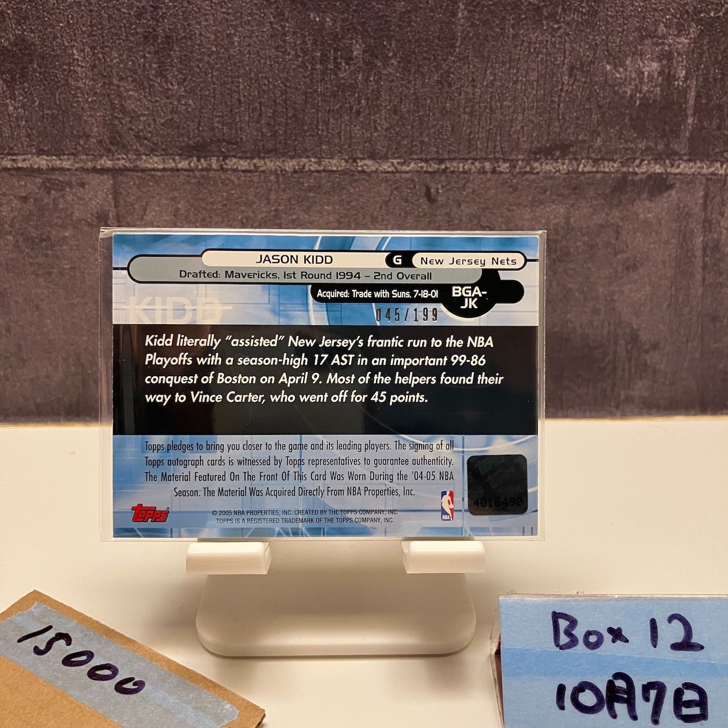 2005 Topps Jason Kidd 045 199 直筆サインカード Jersey Nets ジャージ カード