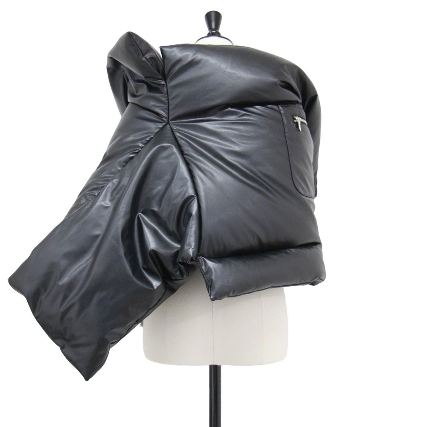 JUNYA WATANABE COMME des GARCONS ジュンヤワタナベ コムデギャルソン ケープ ブラック 黒 サイズ XS フェイクレザー ダウン アウター ストール アシンメトリー ボリューム レディース