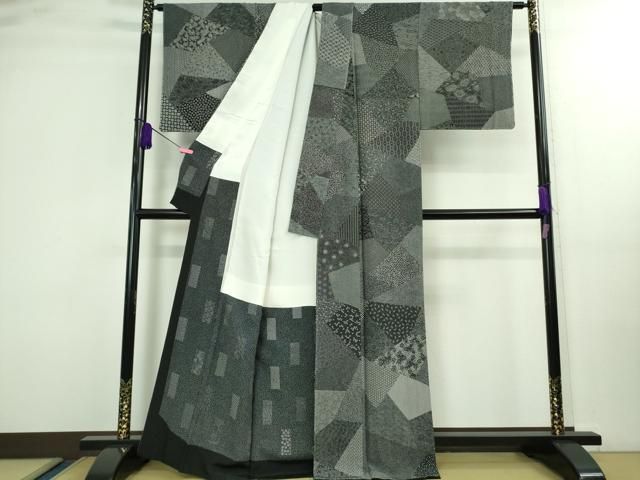 平和屋着物 上 小紋師 北原寿永 百柄 切嵌 黒×白 鬼しぼ縮緬 kh 5