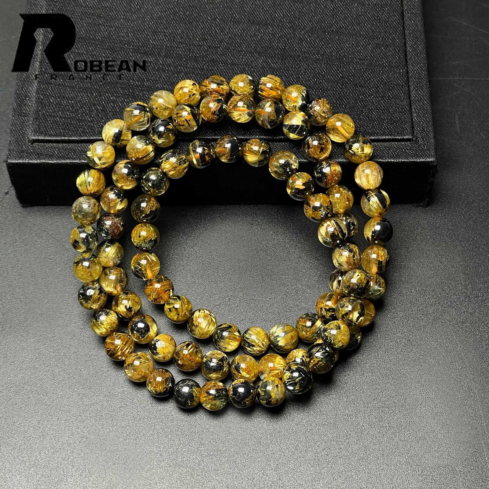 EU製 定価21万円 ROBEAN 太陽花タイチンルチル 黄金針水晶 金運 開運 ゴールド 3本巻きブレス パワーストーン プレゼント 6.3-6.9 mm