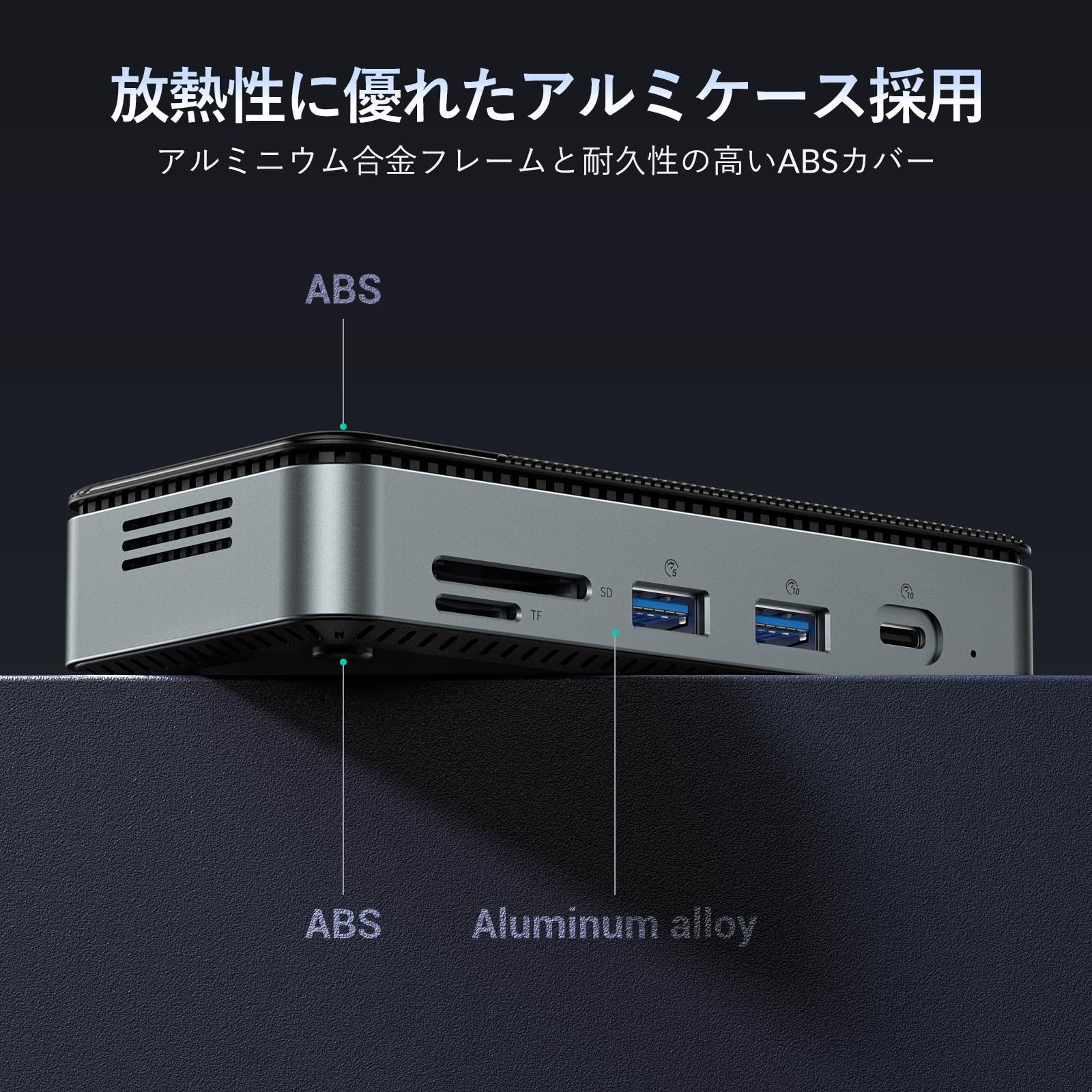 【4K HDMIビデオ出力&10Gbps】:ビデオアダプターを使用することで、ビデオやオーディオを送信でき、家族と一緒に映画を聴くことができます。Type-C3.1およびUSB 3.1転送速度最大10Gbps、100W高速充電、SDとTF同時読み取りをサポート。1つのUSB Aポートと1つのUSB Cポート、どちらもUSB 3.2 Gen2 10Gbpsスピードに対応しております。注:hdmi cabelに接続してcedio出力を開始すると、30秒の再生遅延が存在します。ビデオ出力の場合は、デバイスがデータとディスプレイポートのスタンバイモード(Altモード)をサポートするthunderbolt 3/4またはUSB-Cポートであることを確認してください。データポートだけではビデオ出力をサポートできません。