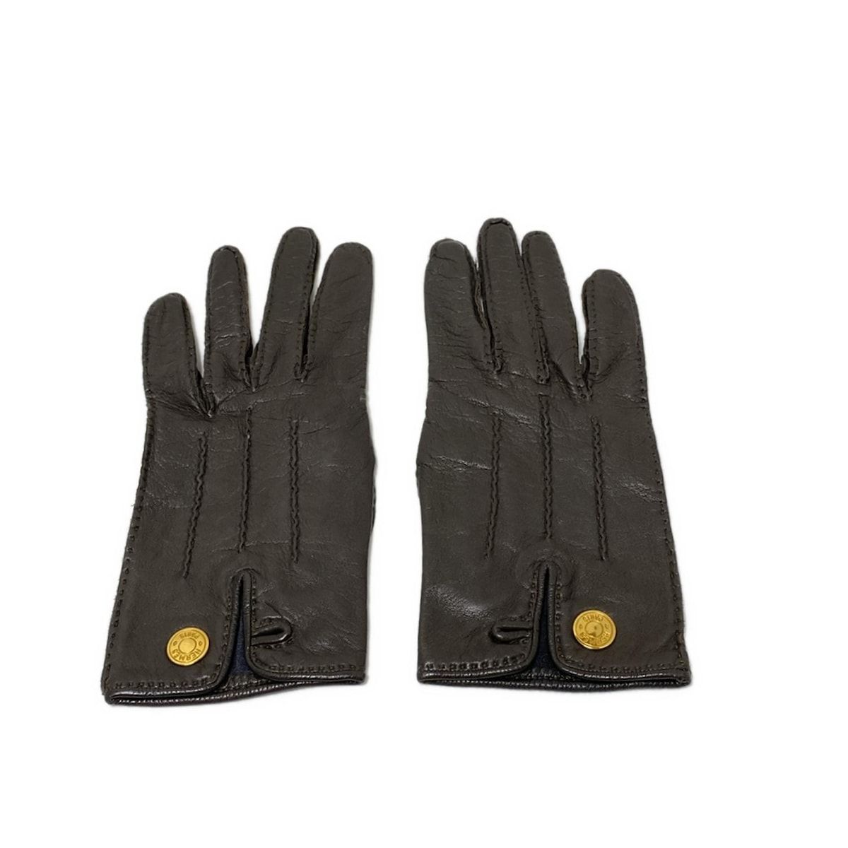 HERMES エルメス 手袋 7 1 2 レディース - ダークブラウン セリエ レザー