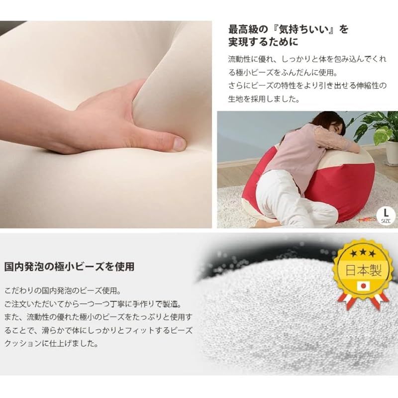 材質:【中材】発泡ポリスチレンビーズ【側生地】収縮する生地: スパンデックス ポリウレタン弾性繊維 ポリエステル 88% ポリウレタン 12% 、収縮しない生地 ポリエステル100%