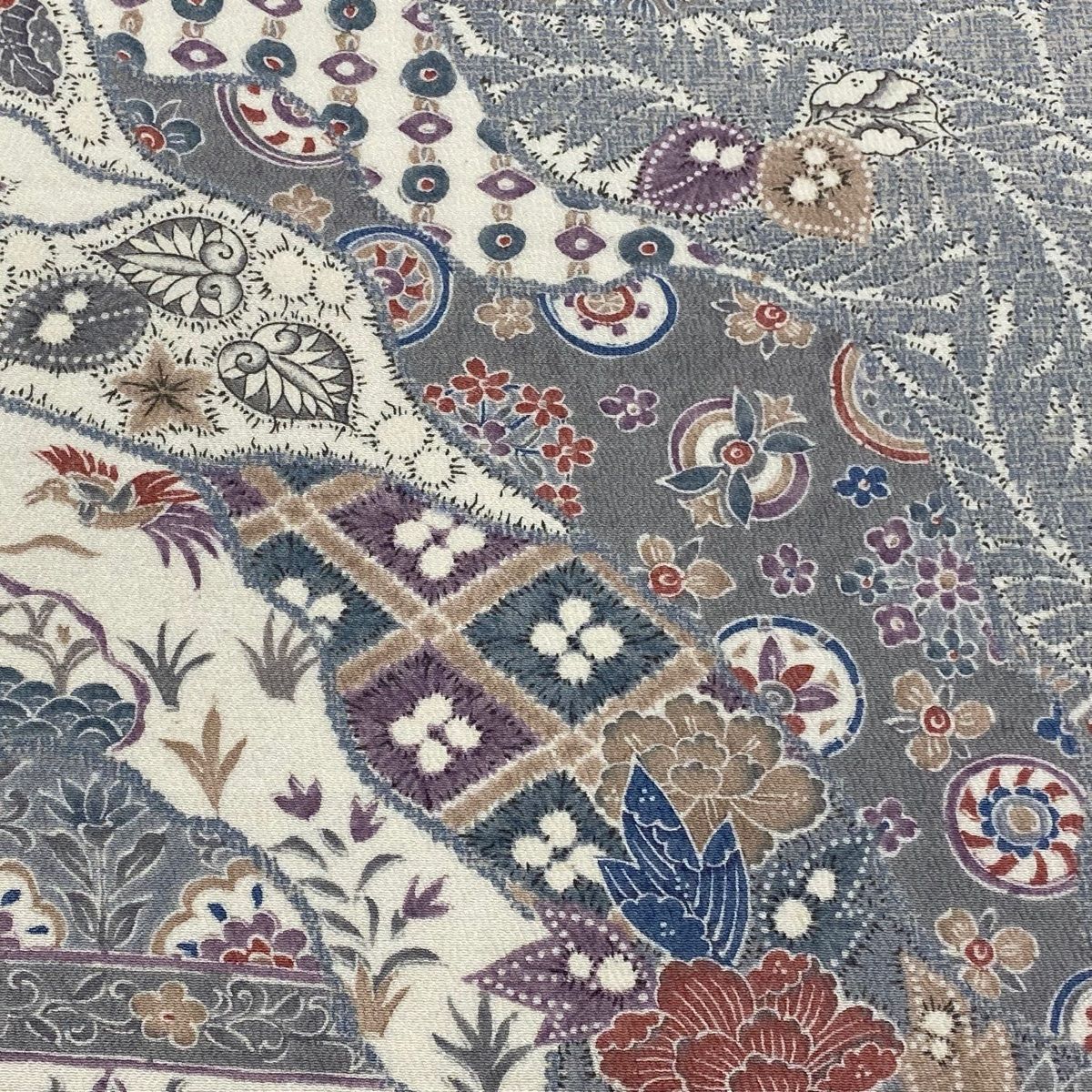 反物 秀品 小紋 草花 道長取り 灰色 正絹