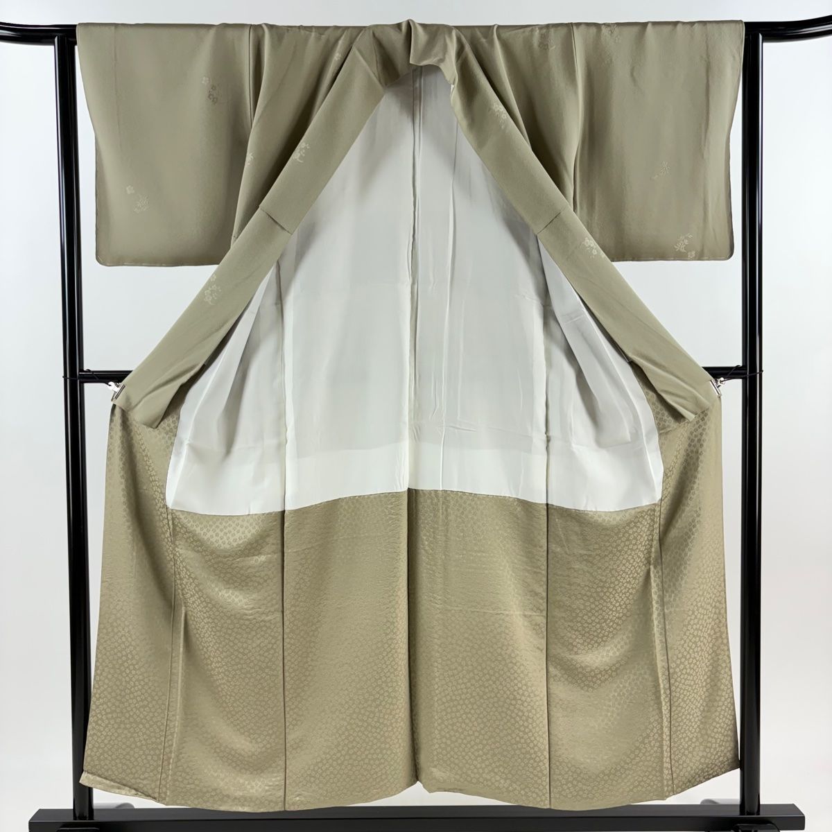 小紋 身丈154 cm 裄丈63 S 袷 柿本市郎 笹 梅 灰茶 正絹 秀品