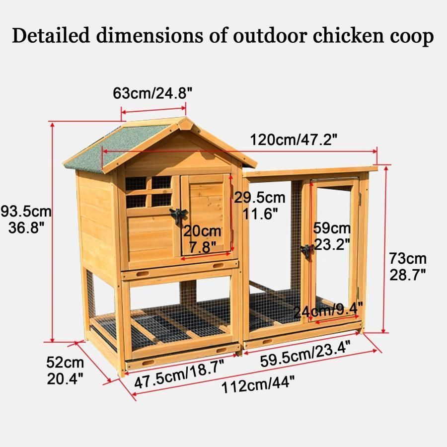 屋外木製鶏小屋耐候性大型 鶏かご 6羽の鶏用の大きな鶏小屋防雨 組み立て簡単複数のドア付き トレー付き ワイヤーメッシュ家庭用 飼育ケージ 家禽用ケージ 鶏舎