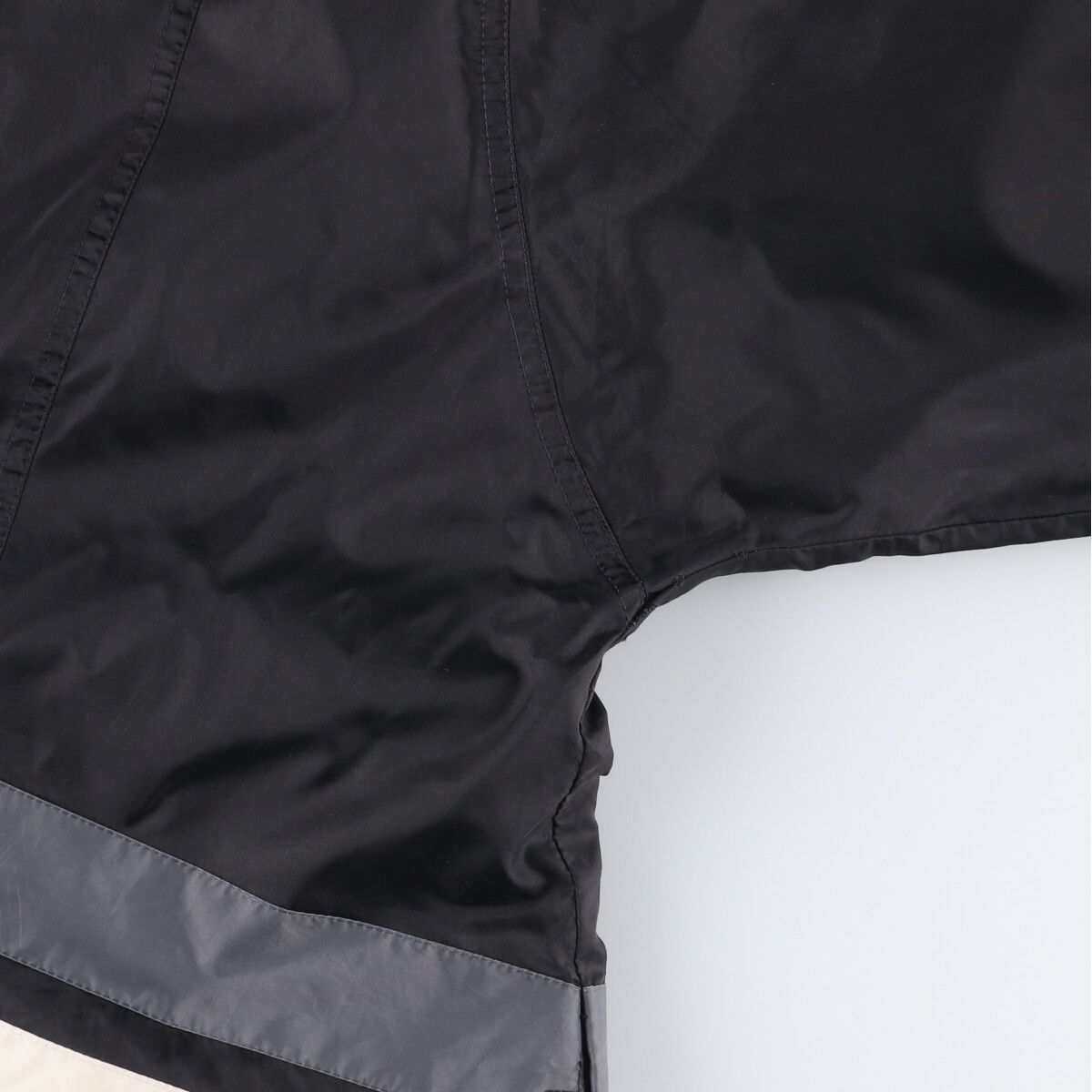 ●前、ジップエンドテープ剥がれ 両腕・両袖先・腹部白ライン部に汚れ 左脇に糸抜け 両袖先に伸び