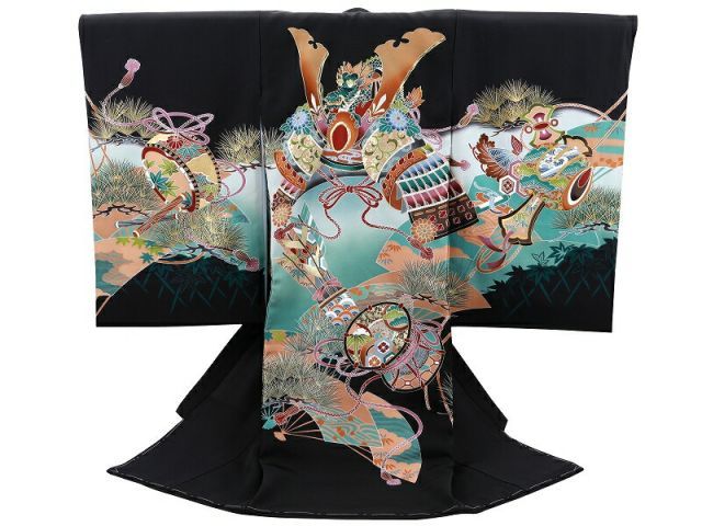 お宮参り 着物 金刺繍入り 長襦袢 セット 男児 男の子 子供 産着 祝着 黒地 兜 ud-250