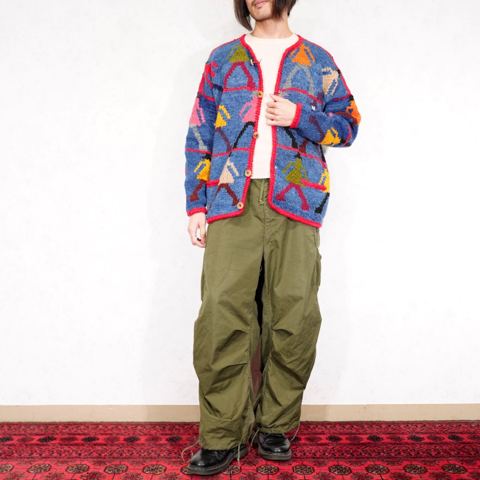 USA VINTAGE AMANO HUMAN PATTERNED DESIGN KNIT CARDIGAN/アメリカ新品人間柄デザインニットカーディガン