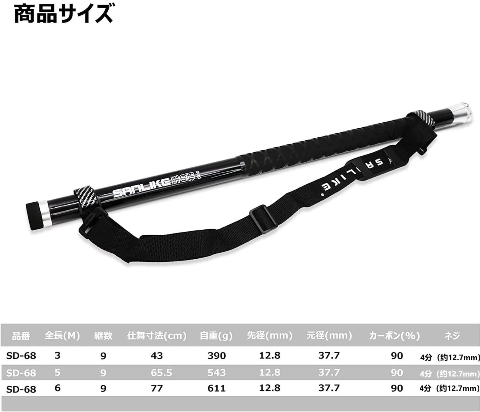 サンライク(SANLIKE) タモ網 たも網 タモ たもあみ 釣り タモ 伸縮 99%カーボン製(炭素繊維) ランディングネット 枠サイズ60×48cm 淡水海水両用 3m/5m/6m レッド&ブラック