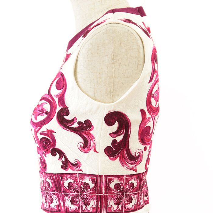 DOLCE-GABBANA ドルチェアンドガッバーナ ワンピース ブロケード マヨリカプリント ジャガード ノースリーブ ドレス レディース サイズ 36 パープル ピンク ホワイト 紫 桃 白 イタリア製