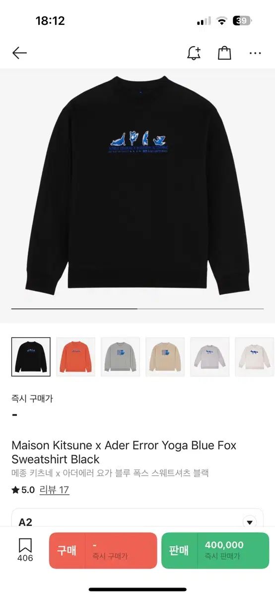 アーダーエラー メゾンキツネ コラボ ブラック スウェット A 2 サイズ
