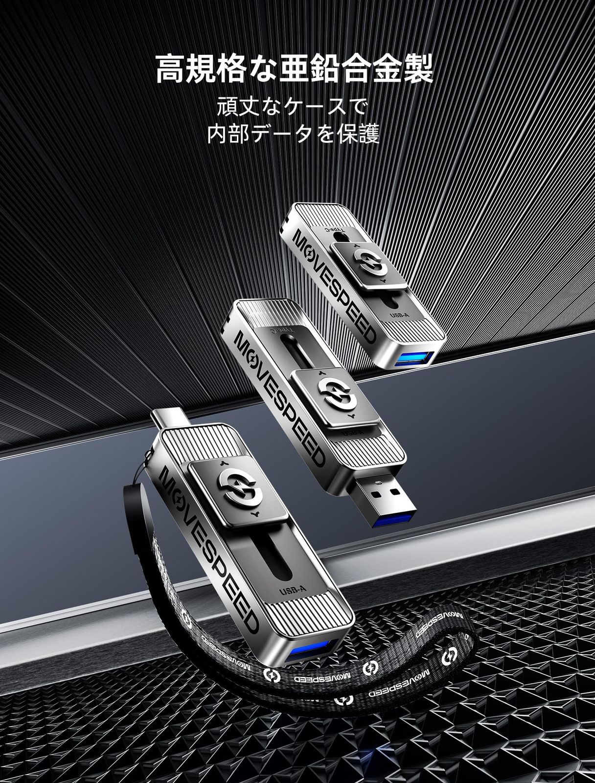 MOVE SPEED SSD 外付け 128/256/512/1TB/2TB スティック型 USB 3.2 Gen2 Type-A/Type-C両対応 金属筐体 Win/Mac PS5/PS4 iPhone15/16/17シリーズ対応 ポータブルSSD USB-A/USB-C搭載 ストラップ付き (512, GB)