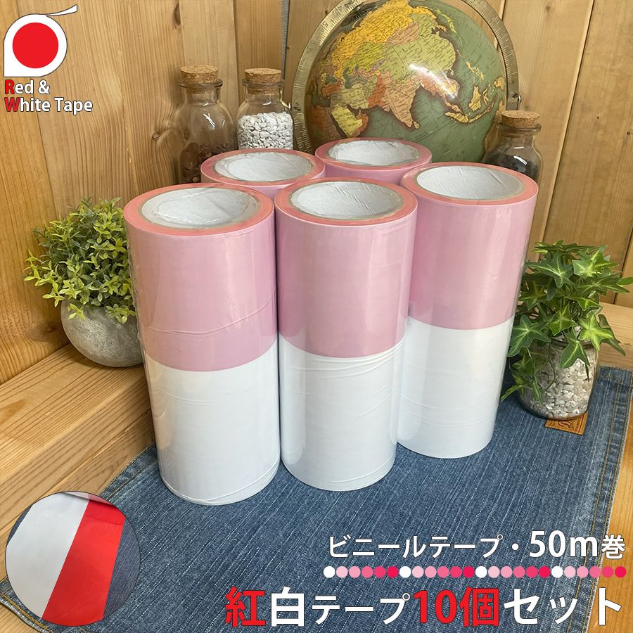 ・商品名:紅白テープ ビニールテープ 22.5cm×50m巻 10個セット
