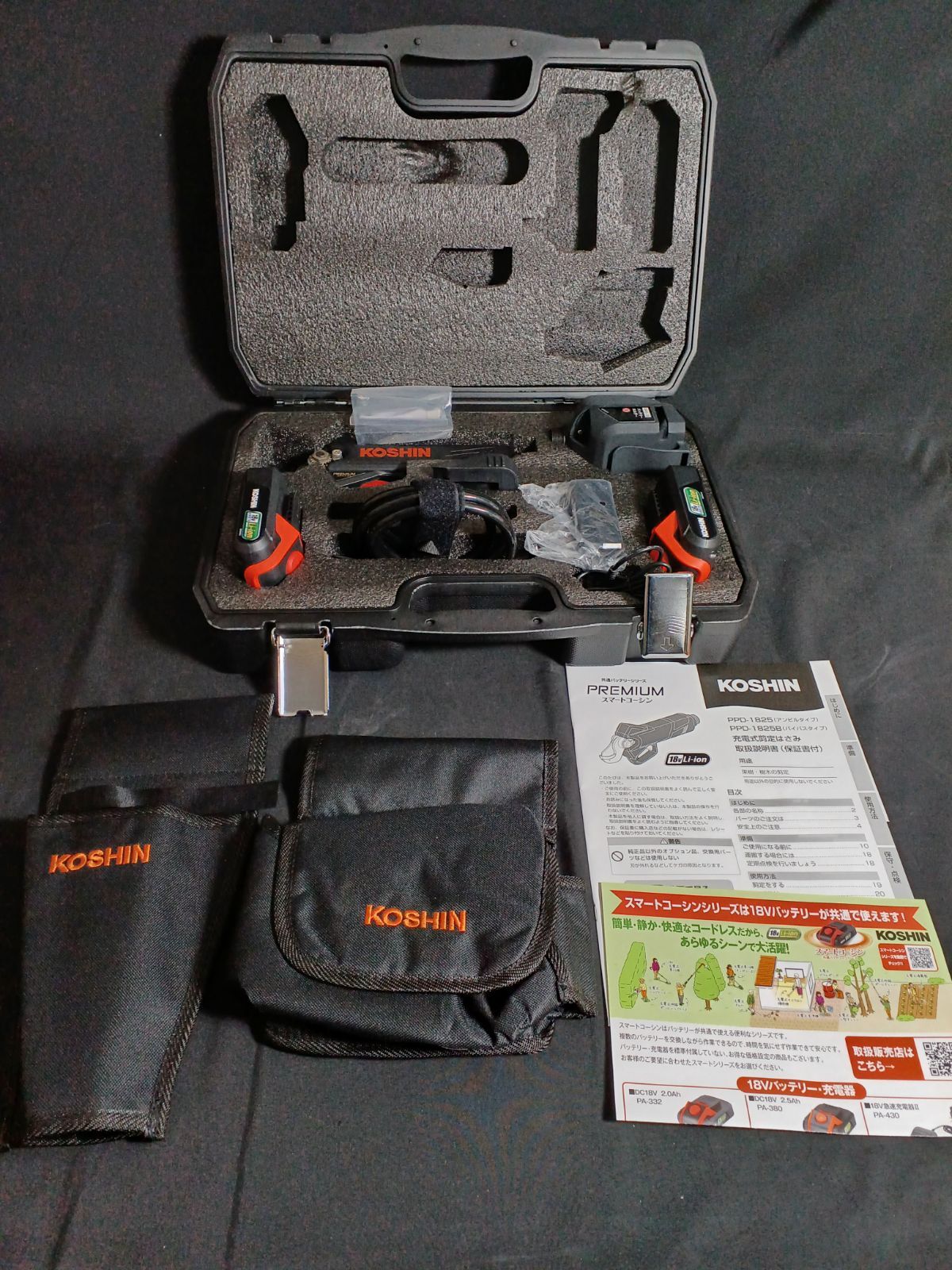 アウトレット品 工進(KOSHIN) 18V 2.5Ah 充電式剪定はさみ PPD-1825 プレミアムシリーズ バッテリー2個・充電器付 標準モードφ15mm 最大モードφ25mm切断 軽量 コンパクト アンビル式 日本製刃 果樹 荒剪定 黒