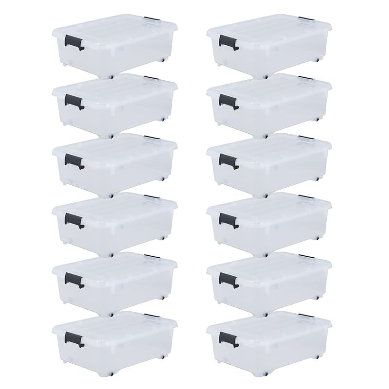 商品名:JEJアステージ(JEJ Astage) 収納ボックス 衣類収納 コロモ浅型 奥行50cmタイプ クリア フタ・コロ付き 日本製 クローゼット 押入れ 日本製 幅38×奥行50×高さ17cm 12個セット
